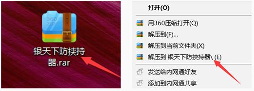 下载 [银天下防挟持器.zip](建议保存在电脑桌面),选中文件单击鼠标右键,选择 “解压到当前文件夹”,即可获得 [银天下防挟持器.exe]程式启动器。